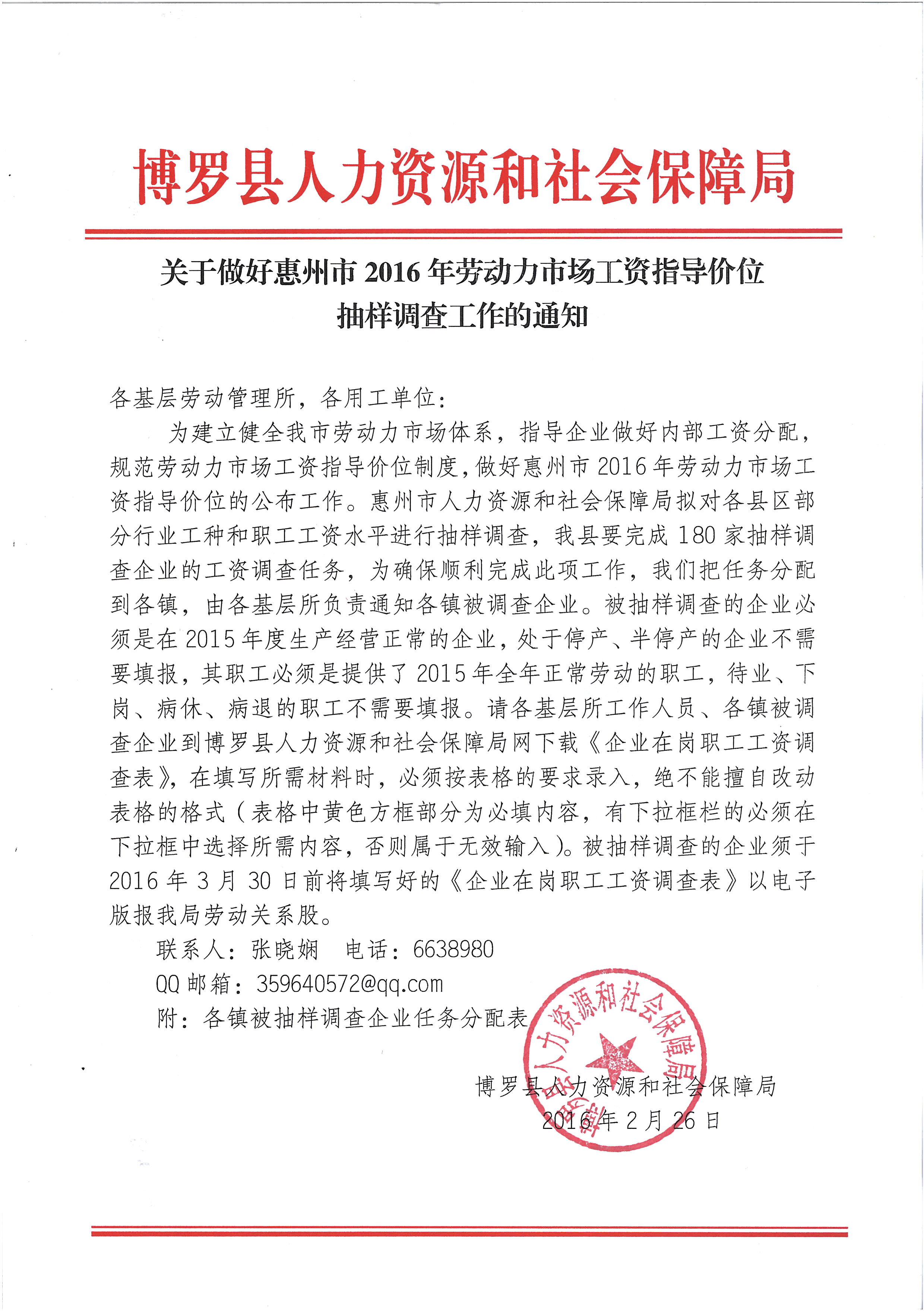 关于做好我市2016年人力资源市场工资指导价位抽样调查工作的通知