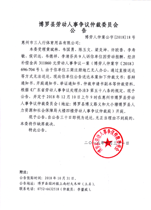 中文博彩平台劳动人事争议仲裁委员会公告(博劳人仲案公字[2018]18号)