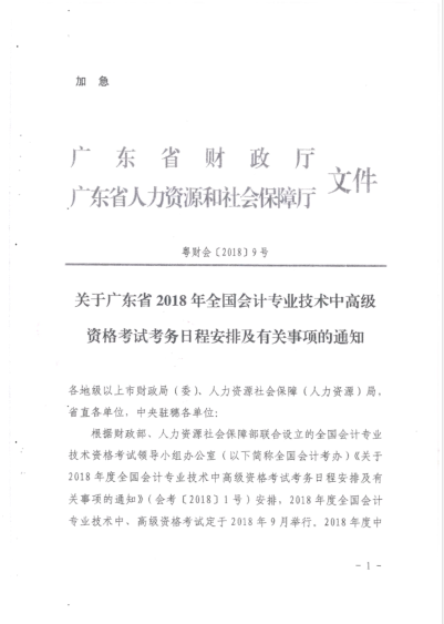转发关于广东省2018年全国会计专业技术中高级资格考试考务日程安排及有关事项的通知