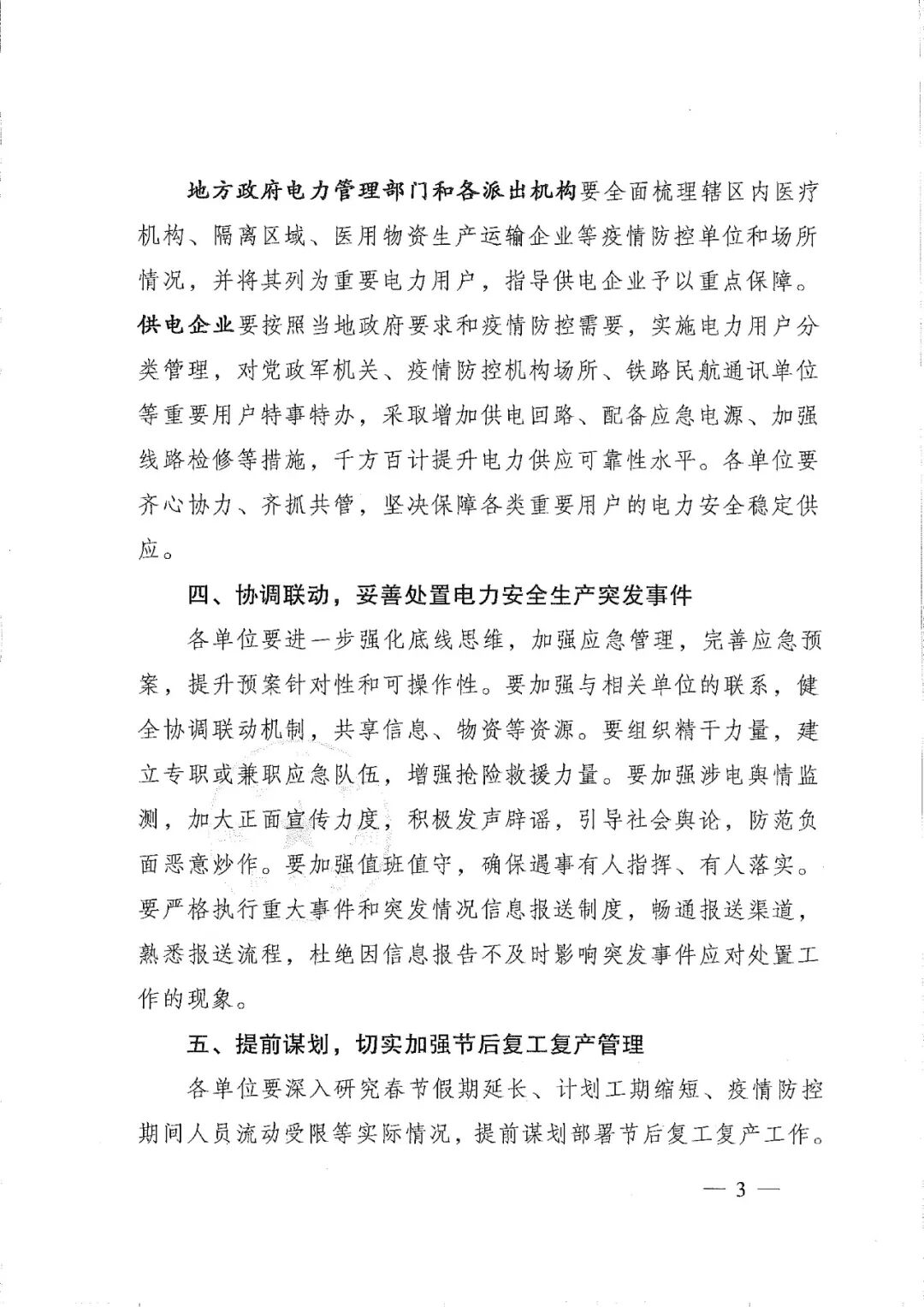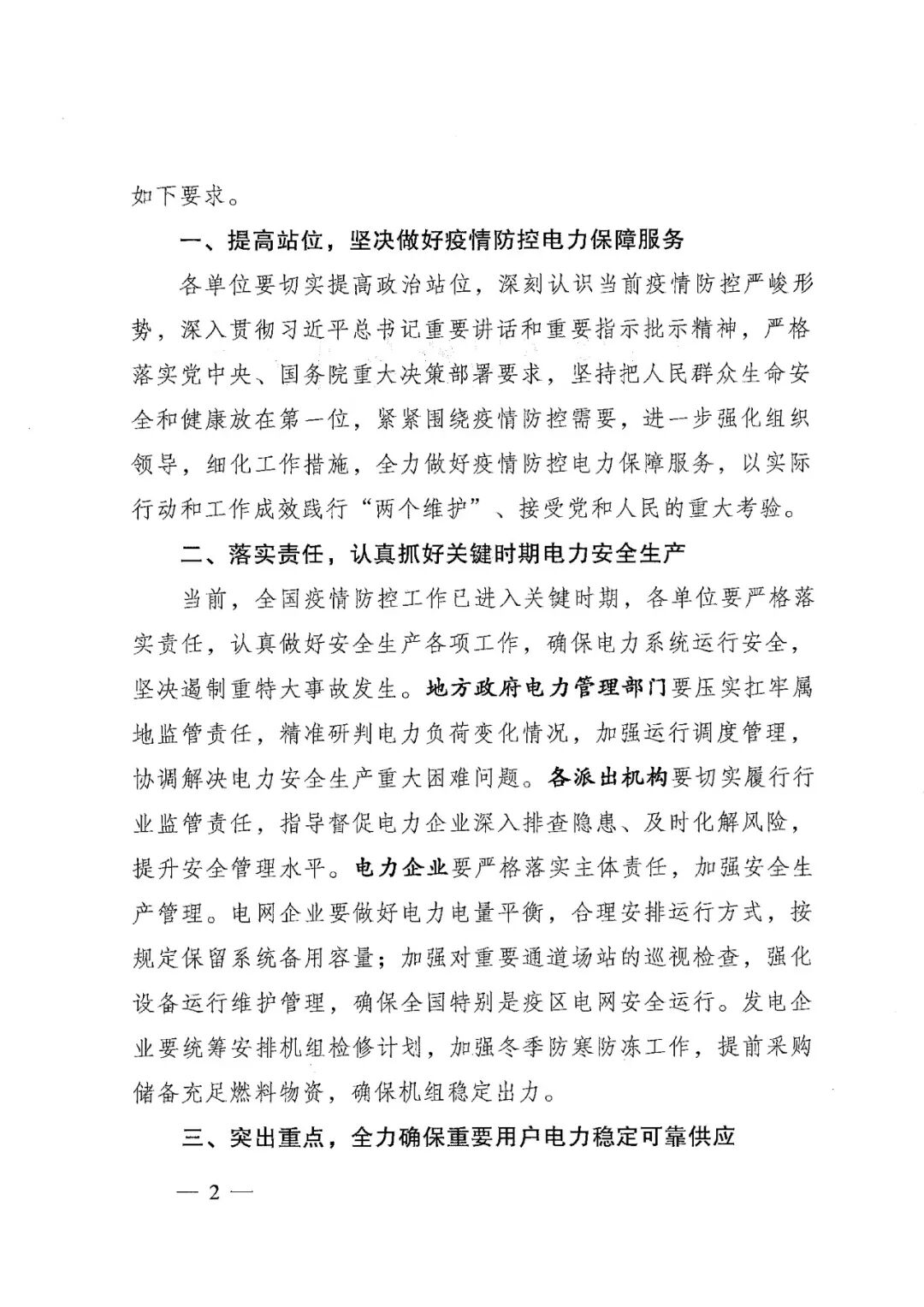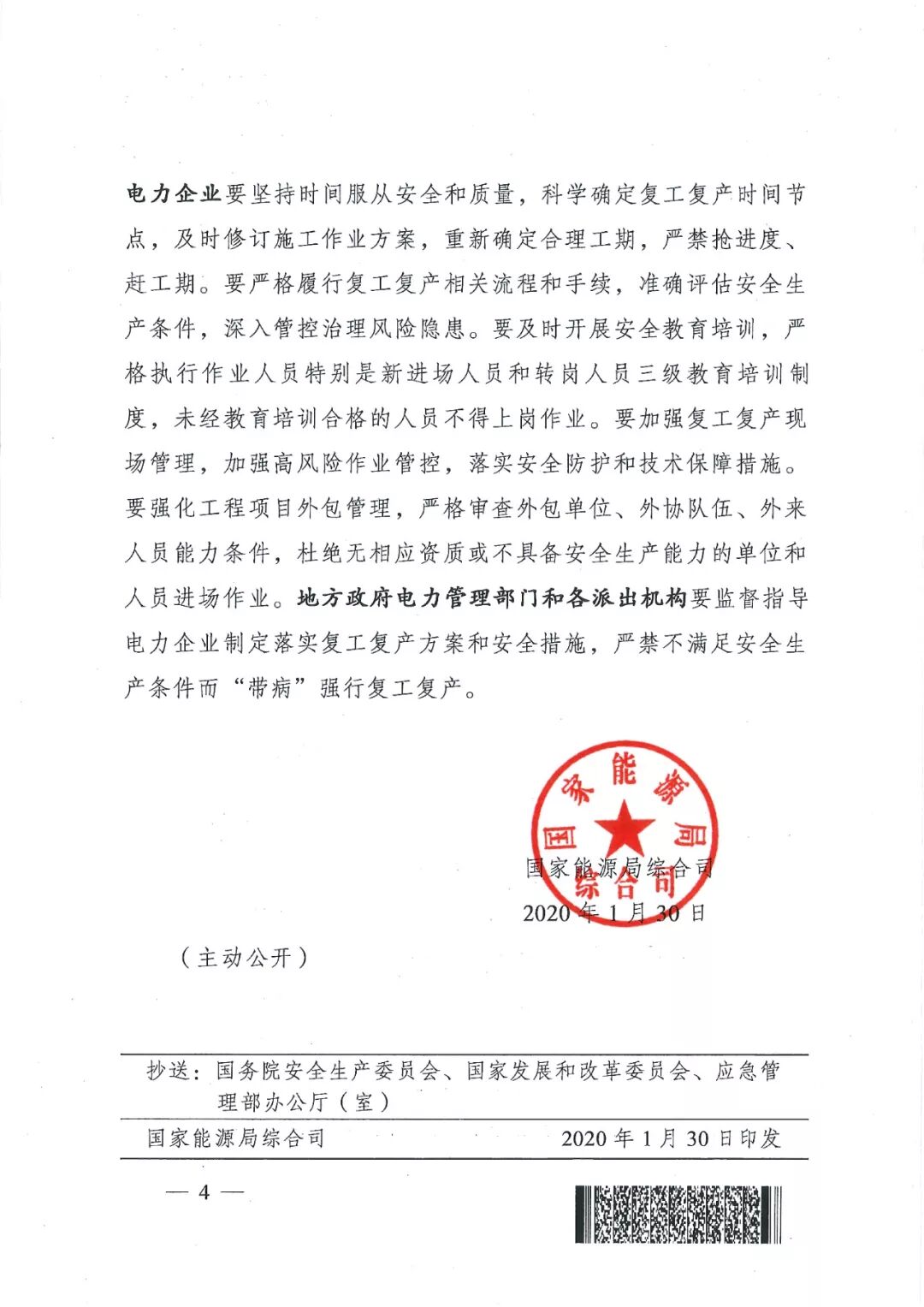 1月30日,国家能源局综合司印发《关于切实做好疫情防控电力保障服务和当前电力安全生产工作的通知》(国能综通安全〔2020〕6号),就进一步做好疫情防控电力保障服务和当前电力安全生产等有关工作提出要求。全文如下: