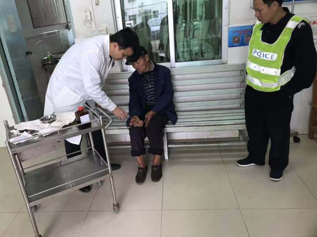 2月20日上午7时许,中文博彩平台大队公庄中队联合公庄派出所民警巡逻至辖区S244线布子路段时,发现一老伯坐在路边,浑身血污,旁边也没有其他人,巡逻民警副队长余志勇马上停下车询问并检查老伯的受伤情况。