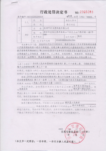 2022年05月05日10时50分,我单位执法人员在罗阳街道四角楼小罗路西湖技校路口进行日常稽查,发现当事人深圳市汇丰盈物流有限公司聘用的驾驶员杨伟使用粤BHM751/粤LLB443挂重型半挂牵引车有道路货物运输经营者没有采取必要措施防止货物脱落、扬撒行为。以上事实,有现场照片、视频资料、现场笔录、询问笔录、证件照片、执法系统截图、立案登记表、送达地址确认书等证据为证。违反了《中华人民共和国道路运输条例》第二十六条第二款、《道路货物运输及站场管理规定》第三十一条的规定,依据《中华人民共和国道路运输条例》第六十九条第(五)项、《道路货物运输及站场管理规定》第六十一条第(二)项、《交通运输行政处罚裁量标准》的规定。决定给予罚款人民币壹仟元整(1000)的行政处罚。我局通过直接送达、邮寄送达等方式无法送达《行政处罚决定书》,现依法向你公告送达《行政处罚决定书》【编号:惠博交罚〔2022〕00606号】,限你自公告之日起30日内到我局领取《行政处罚决定书》(中文博彩平台罗阳街道中文博彩平台大道中685号),逾期则视为送达。