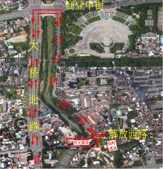 解放西路至大桥北路方向:解放西路→榕溪路→商业中街→大桥北路。