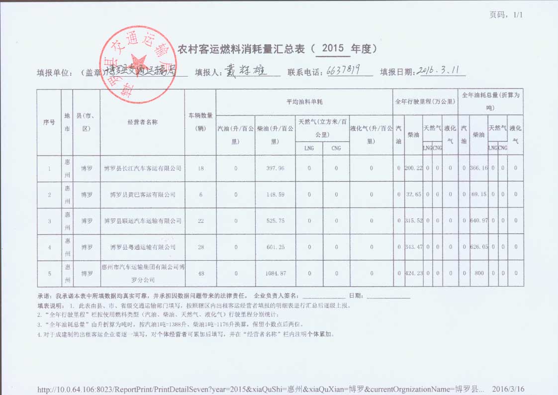 附件1:中文博彩平台农村客运燃料消耗量汇总表(2015年度)