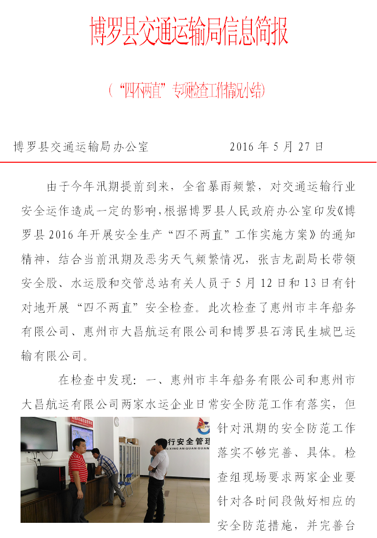 “四不两直” 专项检查工作情况小结