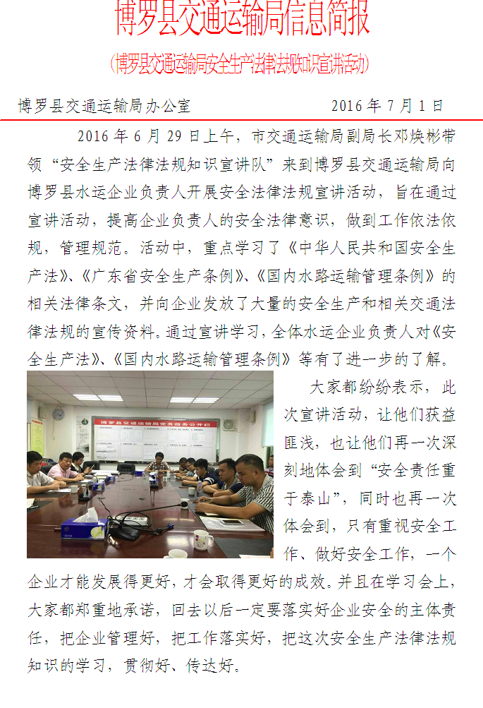 中文博彩平台交通运输局安全生产法律法规知识宣讲活动