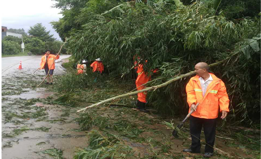 这次台风,导致了我局地方公路管理站管养的X193线龙华至凤山路段、X215线高速路杨村出口至观音阁路段以及Y556线石坳至罗浮山路段等20多条县乡道路共计倒塌路树93棵,吹断树枝25棵,倒塌竹子120棵。为了及时快速地清理路障,我局地方公路管理站共组织出动养护工作人员 120 多人,动用养护车辆19辆、电锯11台,对路树倒塌路段进行及时抢通和清理。截止到2016年8月2日上午10时,我局已完成对全路线倒塌路树抢通清理,共投入资金约 6.26万元。