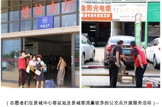 (志愿者们在县城中心客运站开展志愿服务活动)