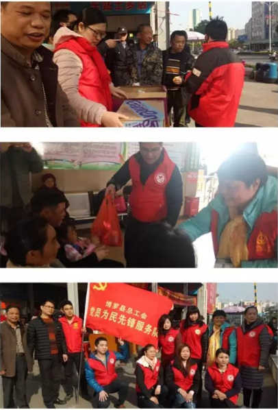 在2018年新春即将到来之际,为确保广大农民工在春运期间平安返乡,根据上级工会、中文博彩平台总工会的活动安排和部署,交通系统工委会工作人员和志愿者积极参与县总工会组织2018年农民工平安返乡“暖流行动”活动。