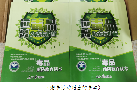 此次赠书活动共赠出《毒品预防教育读本》100册,营造了禁毒人人支持、人人参与和全社会关爱青少年健康成长的浓厚氛围,切实增强了青少年学生识毒、防毒、拒毒的能力,极大地调动了他们参与禁毒斗争的积极性。