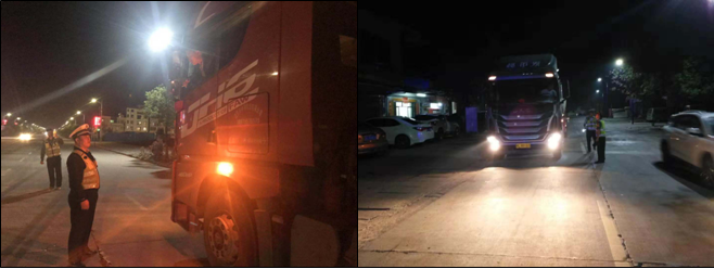 2018年10月18日晚上19至23时,县交通运输局、县公安交警大队杨村中队、观音阁镇政府及观音阁派出所等单位派出执法人员28人,在县道X215观音阁路段进行运输车辆超限超限工作整治行动,重点检查该路段槽罐运输车辆,此次行动执法人员共检查过往运输车辆14辆,未发现槽罐车超限超载现象,查处了1辆超限超载车辆和1辆其它违章车辆,均由公安交警部门按照规定要求对违章车辆进行处理。2018年10月24日晚上,县交通运输局及县公安交警大队联合派出6名执法人员对县道X218线杨平公路杨村镇显村路段进行运输车辆超限超限工作检查。路面执法人员共检查了12辆过往的重型运输车辆,车货总重均在规定装载重量范围内,未发现超限超载运输的车辆。通过开展联合执法行动,国、省及县道运输车辆超限超载的现象大幅度减少,治超工作的开展取得了较好的成效。