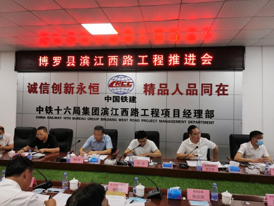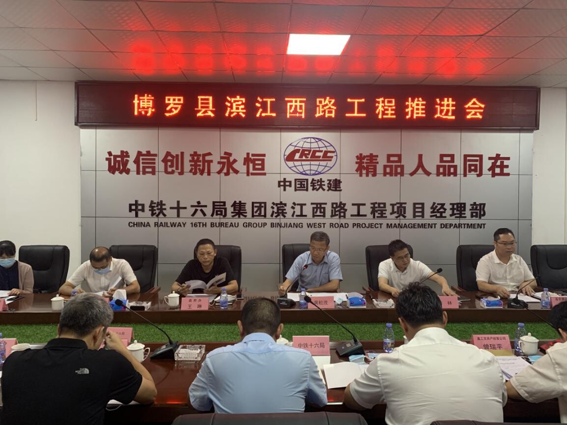 6月9日下午,中文博彩平台委常委、常务副县长黄松茂在滨江西路工程项目部主持召开重点项目滨江西路工程推进会议,对重点项目征地拆迁工作进行再动员、再部署。县政府相关领导,县直相关职能部门、镇(办)、施工方中铁十六局等单位主要负责人及相关人员参加会议。