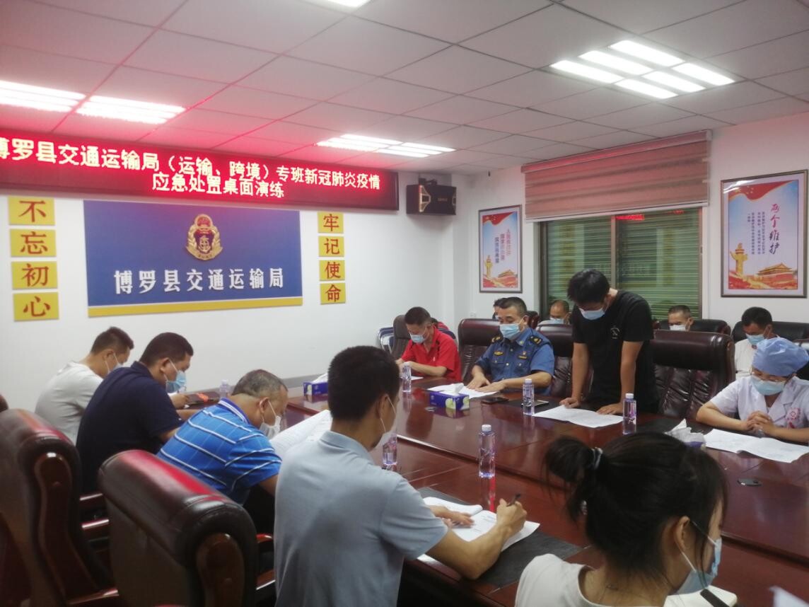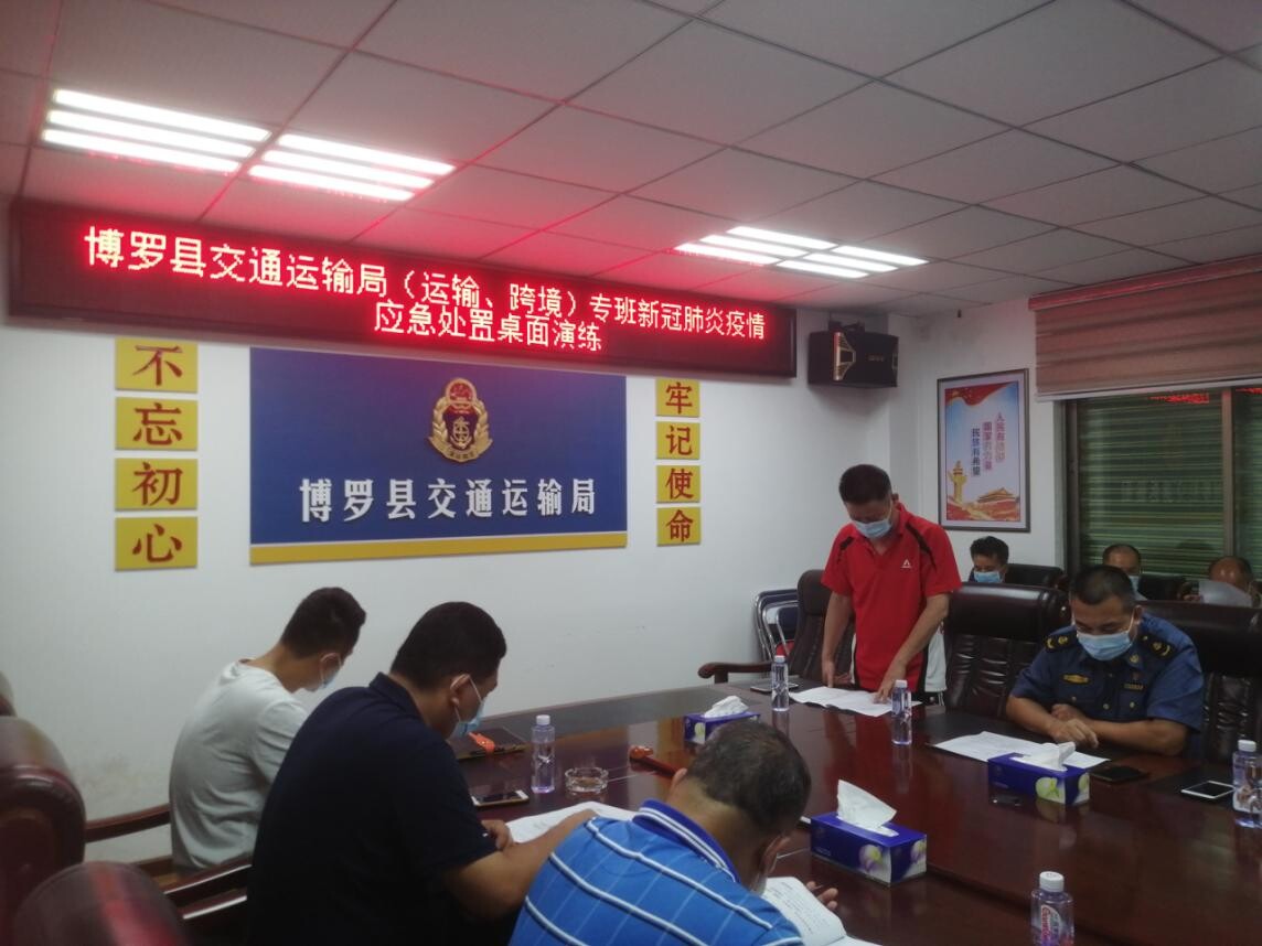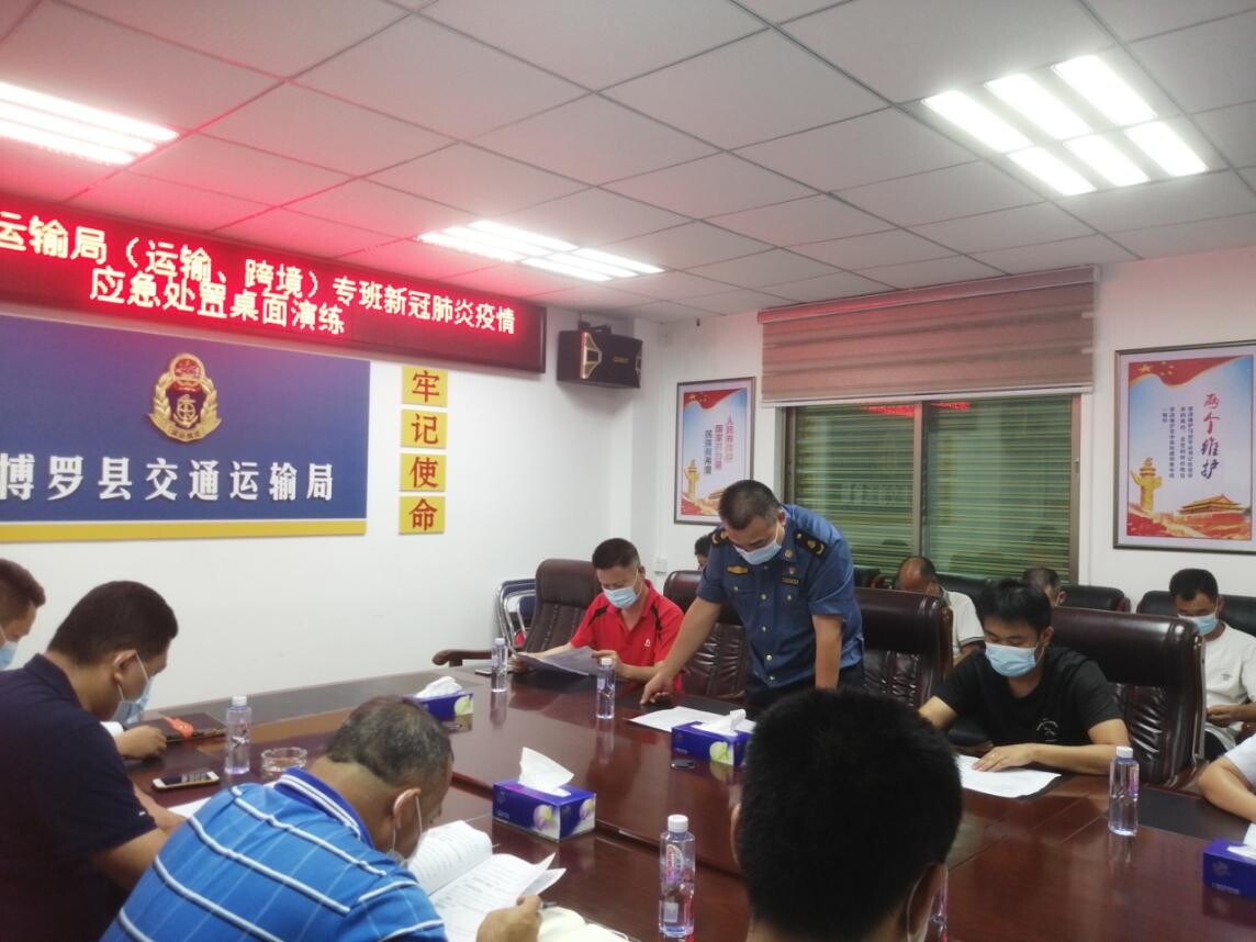 为严格执行县委、县政府及上级部门部署的防疫要求,组织和督导辖区内客运行业、粤港跨境道路货物运输专班做好疫情防控工作,严防周边中高风险地区及境外疫情输入,进一步提高我县运输、跨境专班疫情应急处置水平,确保我县交通运输行业安全平稳。6月13日,中文博彩平台交通运输局举行运输、跨境专班新冠肺炎疫情应急处置桌面演练。本次演练由县交通运输局运输管理股股长廖旭辉担任总指挥,县交通运输管理中心主任戴辉雄担任现场指挥员,县交通运输管理中心刘菁菁同志担任导调员,跨境运输专班、联防联控点、义和卫生院工作人员及8家客运企业、2家客运站场负责人参加本次演练。