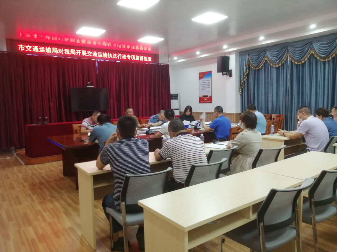 为促进依法行政,进一步规范交通运输行政执法行为,同时对近期开展交通运输执法领域突出问题专项整治行动推动情况进行检查,7月14日上午,惠州市交通运输局执法监督科、执法支队法制室负责人组成督查组对我局开展交通运输行政执法工作监督检查,县交通运输局副局长李旺发,政策法规股、执法队、专项整治行动专班相关工作人员参加督查会议。