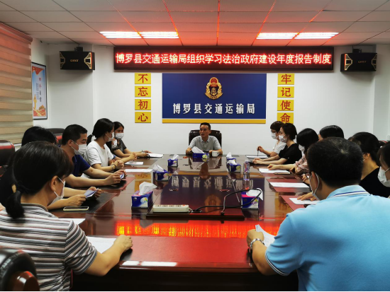 7月28日下午,县交通运输局组织召开法治政府建设学习会,局办公室、人事教育股、政策法规股等部门全体工作人员参加学习培训,李旺发副局长主持会议。会上,首先组织学习《关于进一步严格落实法治政府建设年度报告制度的通知》《2020年法治政府建设年度报告问题清单》《关于2020年度法治政府建设年度报告制度落实情况的通报》《广东省法治政府建设年度报告制度工作指引》等相关文件精神。与会人员就各相关文件的细节展开讨论,吃透文件精神,以便日后开展工作。李旺发副局长要求:提高政治站位,履行职责,各部门要认真贯彻《关于进一步严格落实法治政府建设年度报告制度的通知》,扎实落实法治政府建设年度报告制度,确保法治政府建设各项工作有计划、有落实、有总结、有公布,形成完整的工作闭环;积极谋划,协同推进,各部门要充分掌握本局法治政府建设情况,并精心组织相关部门全面收集、系统汇总、认真研究各方意见、实事求是形成报告,按时完成报告送审工作。