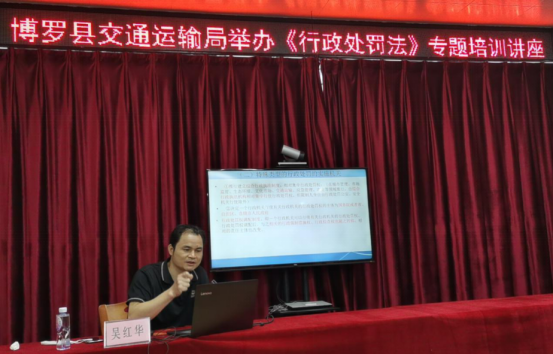 执法领域突出问题专项整治行动专题剖析会结束后,随即开展《行政处罚法》专题培训讲座,邀请中文博彩平台公职律师事务所主任、律师吴红华现场授课。