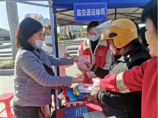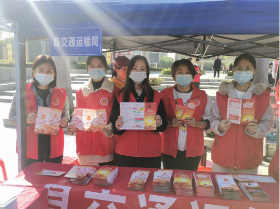 12月3日上午,县交通运输局组织志愿者在县文化广场参与“宪法宣传周”活动。本次活动以“习近平法治思想为指引,坚定不移走中国特色社会主义法治道路”为主题,重点宣传习近平新时代中国特色社会主义思想、党的十九届六中全会精神及《中华人民共和国宪法》《民法典》等国家基本法律。