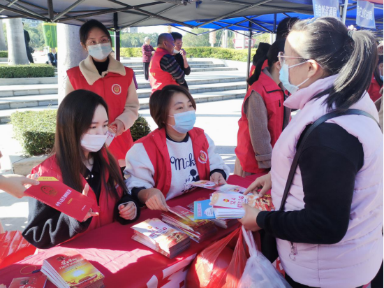 “国家宪法日是在每年的12月4日为了增强全社会的宪法意识,弘扬宪法精神,加强宪法实施,全面推进依法治国而设立的节日。”志愿者们热情地向市民群众解疑释惑。