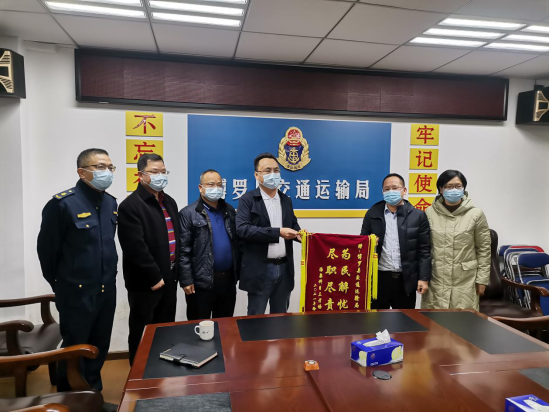 12月27日下午,惠州市耀宇实业有限公司(汤泉科目三考场)伍福辉经理、惠州市交通运输协会驾培分会李月清秘书长向县交通运输局赠送了一面印有“为民解忧 尽职尽责”字样的锦旗,以此表达对交通运输局集中整治汤泉考试路段工作的肯定和感谢。县交通运输局专职副书记邹洪亮代表交通运输局接受锦旗。