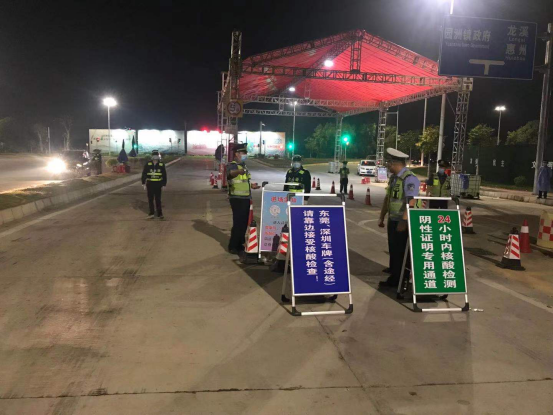 鉴于当前深圳、东莞等周边城市疫情防控严峻形势,为贯彻落实上级疫情防控工作部署,结合深圳、东莞“一律凭24小时核酸检测阴性证明离深、离莞”等防控要求,3月14日晚,县交通运输局迅速组织执法队工作人员,与属地镇街对接指示牌制作工作,指导落实各交通干线路口设置交通服务点,完成各交通卡口车辆分流工作。