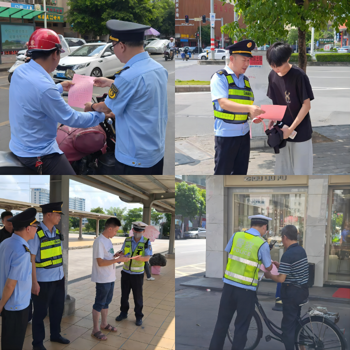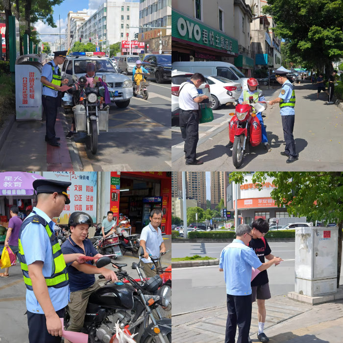 宣传行动中,执法人员在县行政服务中心路段、新世纪市场路段、中心客运站路段、天虹商场路段、县人民医院路段等摩托车载客重点区域向市民派发《关于拒乘营运摩托车的倡议书》,宣传摩托车载客营运行为存在的交通安全隐患,劝导市民加强自我安全保护、拒乘营运性质的摩托车。对宣传过程中发现的载客摩托车乱停乱放行为,及时对载客摩托车骑乘人员进行教育劝导,禁止载客摩托车路边扎堆停放,避免因为载客摩托车乱停乱放扰乱了正常的交通秩序。