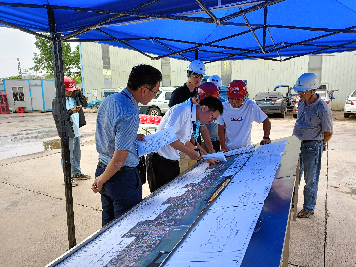 2023年8月9日下午,规建中心工作人员到金龙大道四角楼高速出口路段改造工程检查安全生产、工程质量、项目进度等情况。