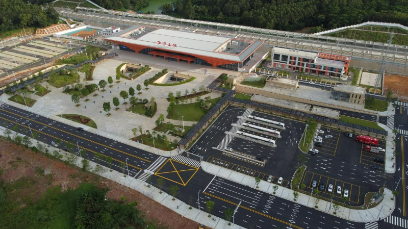 目前,罗浮山站配套工程主体结构、站前广场、地下通道、风雨连廊、市政道路等都已完成,为迎接通车做好了最后的准备工作。