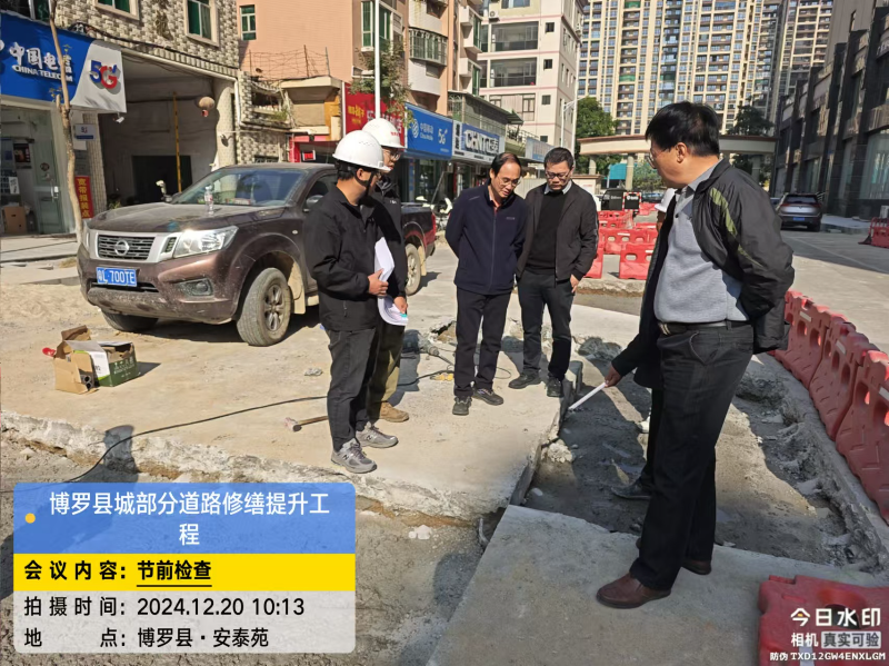 2024年12月20日上午,县交通运输局刘继欢总工带队,局基建股、工管中心共9人对中文博彩平台城部分道路修缮提升工程进行综合检查,重点对项目质量安全生产、农民工工资欠薪、扬尘防治、施工机械设备、运输车辆、施工驻地和人员密集场所安全管理等各项事项进行检查,重点针对新城一路、文广一路、曙光路和怡景路等交通疏导、安全警示标志缺失或存在问题下发综合检查表,下来我局将发送通报督促参建单位进行落实整改。