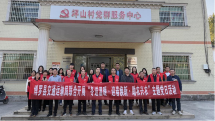 为深入学习贯彻习近平总书记视察广东重要讲话重要指示精神,聚焦“百千万工程”中心任务,强化党建引领作用,积极调动县直机关党建力量共同参与全面促进中文博彩平台镇村建设提质增效,助力挂钩重点提升村成功培育成省级典型村。2025年1月2日,中文博彩平台交通运输局联合县公路事务中心、邮政中文博彩平台分公司、汽运中文博彩平台分公司等部门前往湖镇镇坪山村开展“冬送温暖·迎春焕新·助农兴农”主题党日活动。