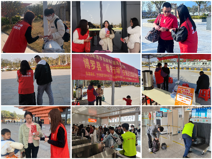 2025年1月20日下午,县交通运输局党办联合运管中心派出志愿者前往罗浮山高铁站开展春运“暖冬行动”志愿服务活动,协助旅客搬运行李,并为现场旅客送上《平安春运安全出行指南》、新春福字和利是封。