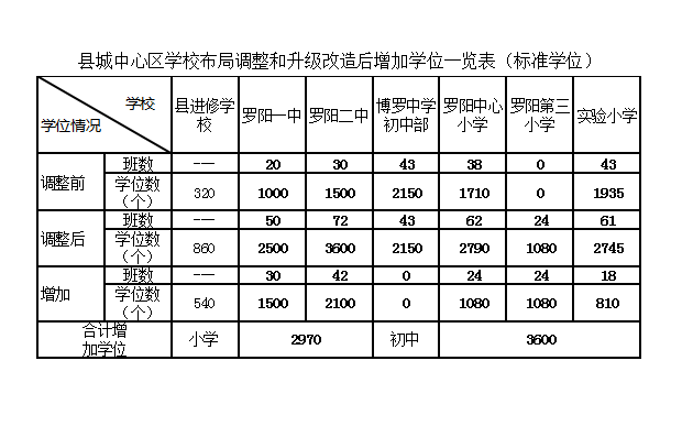 1.将现博师高级中学校区调整改造为罗阳二中新校区,将现县教师进修学校校区及现罗阳二中校区整合,调整改造为实验小学新校区;将现实验小学校区调整改造为县教师进修学校新校区。
