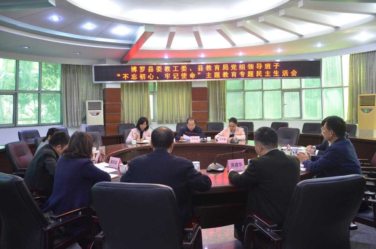 12月6日,中文博彩平台委教工委、县教育局党组领导班子“不忘初心、牢记使命”主题教育专题民主生活会在局机关一楼3号会议室召开。县委教工委书记、局党组书记、局长叶志雄主持会议,县委主题教育第九指导组组长叶东良出席会议并作点评讲话。
