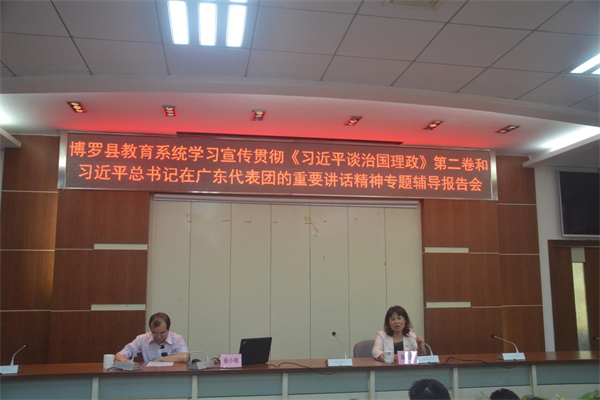 4月27日下午,县教育系统学习宣传贯彻《习近平谈治国理政》第二卷和习近平总书记在十三届全国人大一次会议广东代表团审议时的重要讲话精神专题辅导报告会在局机关1号会议室举行。教育系统党委班子、局机关全体干部职工(含第二党支部支委班子)、县直学校领导班子和支委班子成员共150多人参会。会议邀请县委党校校长张小明作专题辅导报告。报告会由系统党委书记、局党组副书记赖其珍主持。