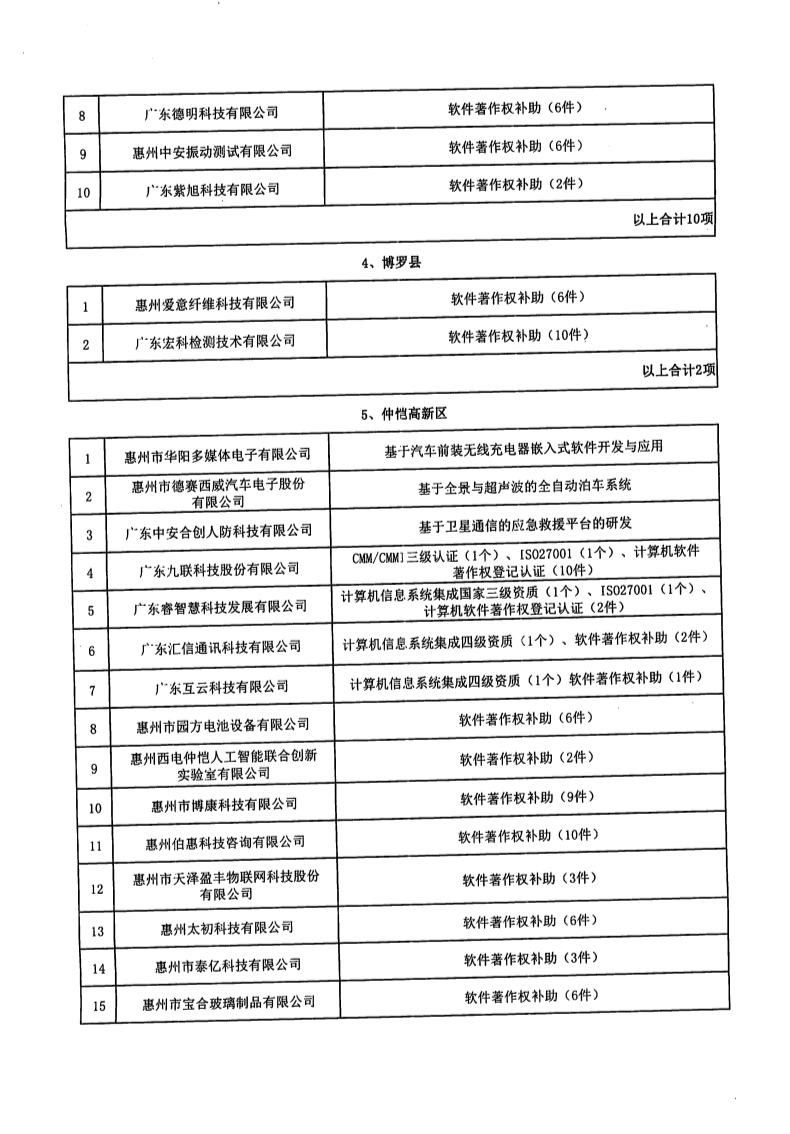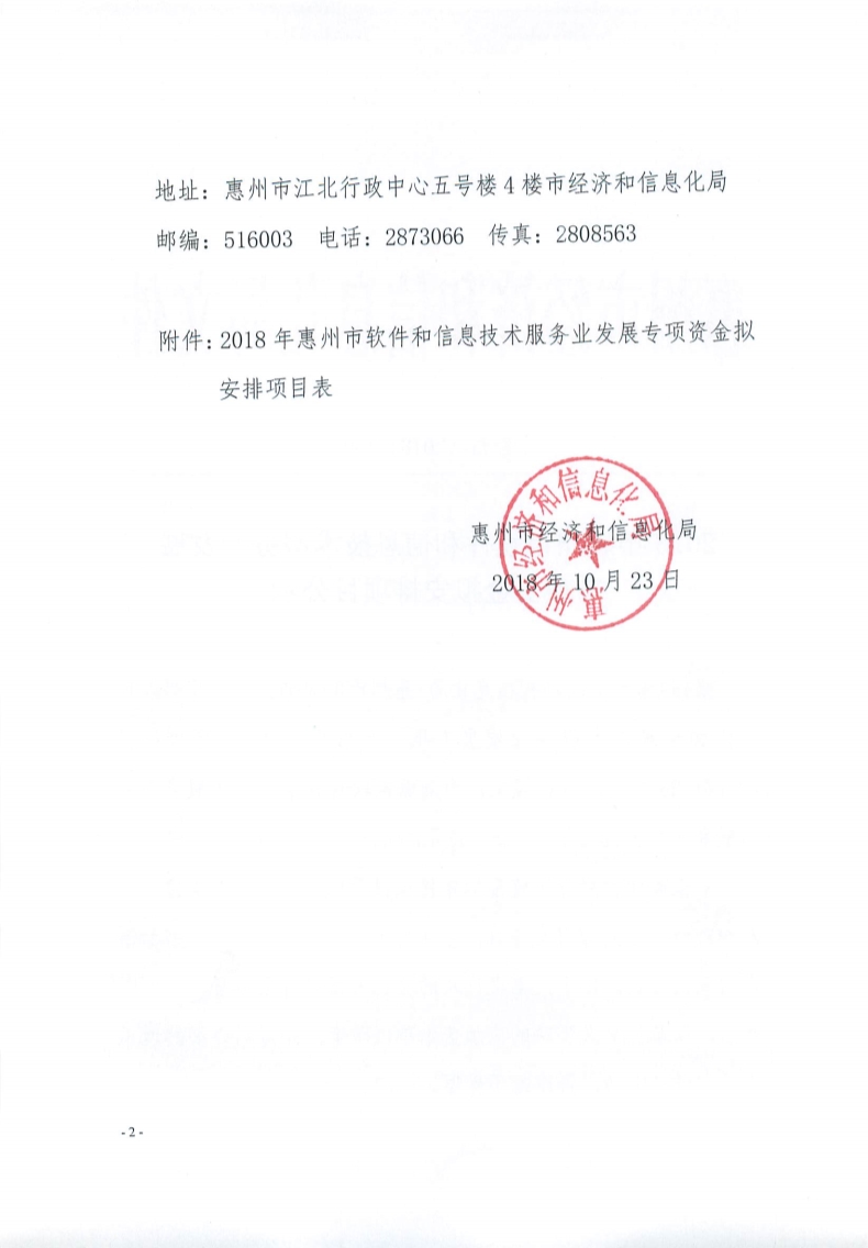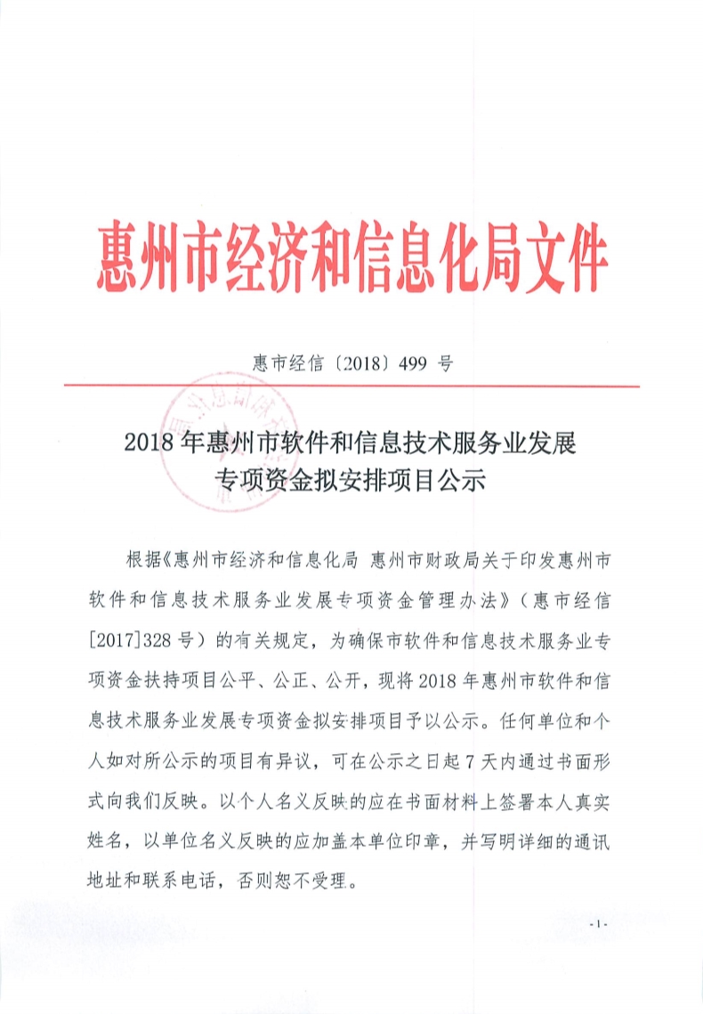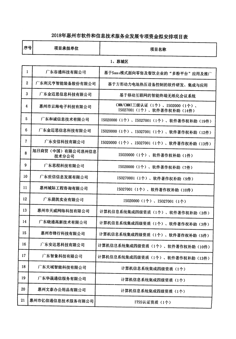 2018年惠州市软件和信息技术服务业发展专项资金拟安排项目公示