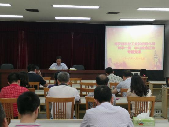 6月17日,中文博彩平台科技工业和信息化局召开了“两学一做”学习教育专题党课。专题党课由科工信局党组书记翟雄伟主讲,局机关全体党员干部参加并聆听了党课。翟雄伟紧紧围绕“学党章党规、学系列讲话,做合格党员”这一主题主线,深入浅出地阐述了“两学一做”学习教育的丰富内涵及重大意义。