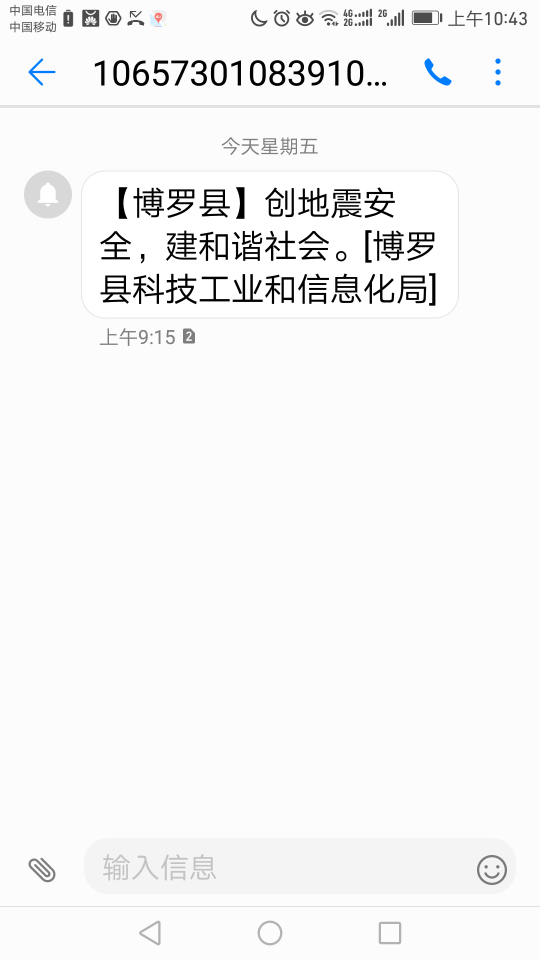 三、2017年5月8日至14日期间,我局利用短信平台向社会大众发送地震宣传短信,进一步扩大宣传教育面,引导群众注重减轻社区灾害风险,提升基层减灾能力。