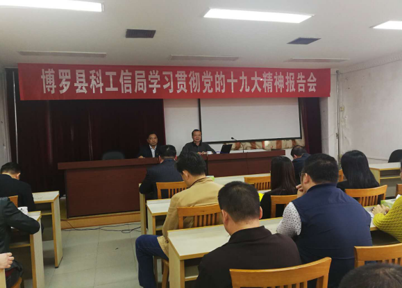 为深入学习贯彻党的十九大精神,切实把思想和行动统一到党的十九大精神上来,12月5日,县科工信局召开学习贯彻党的十九大精神报告会,党组书记翟雄伟主持会议并对我局深入学习贯彻党的十九大精神作出动员部署,会议还邀请县委党校校长张小明作辅导报告,局机关全体干部职工参加了会议。