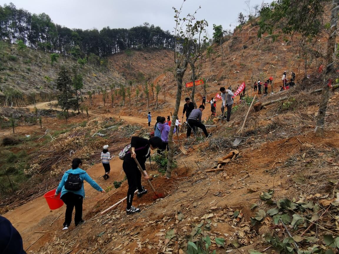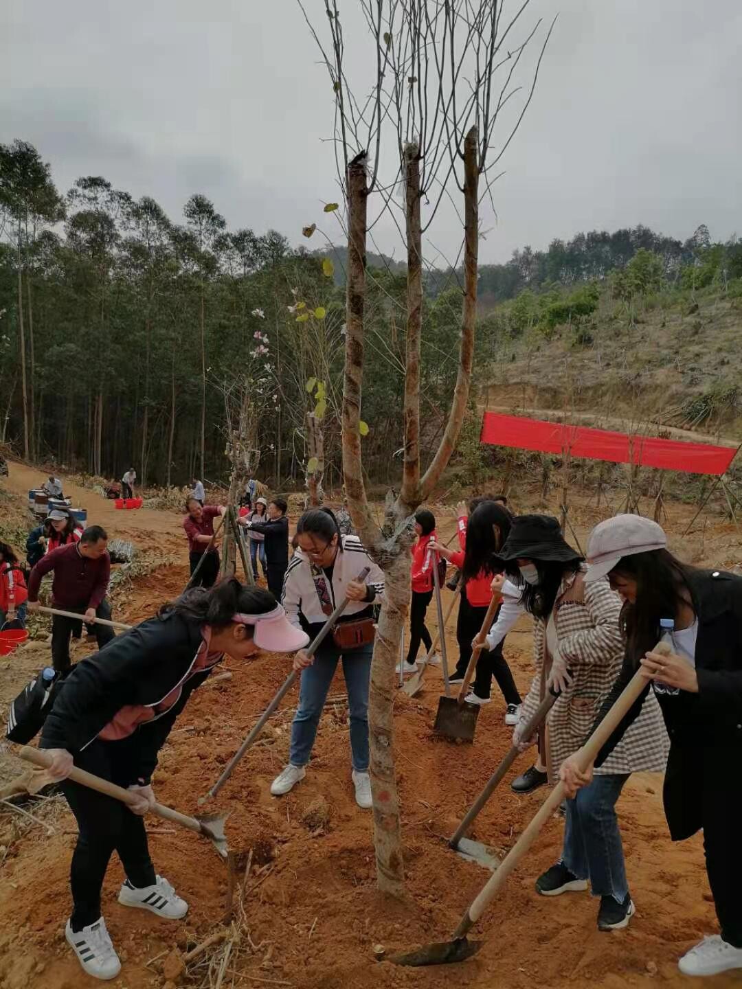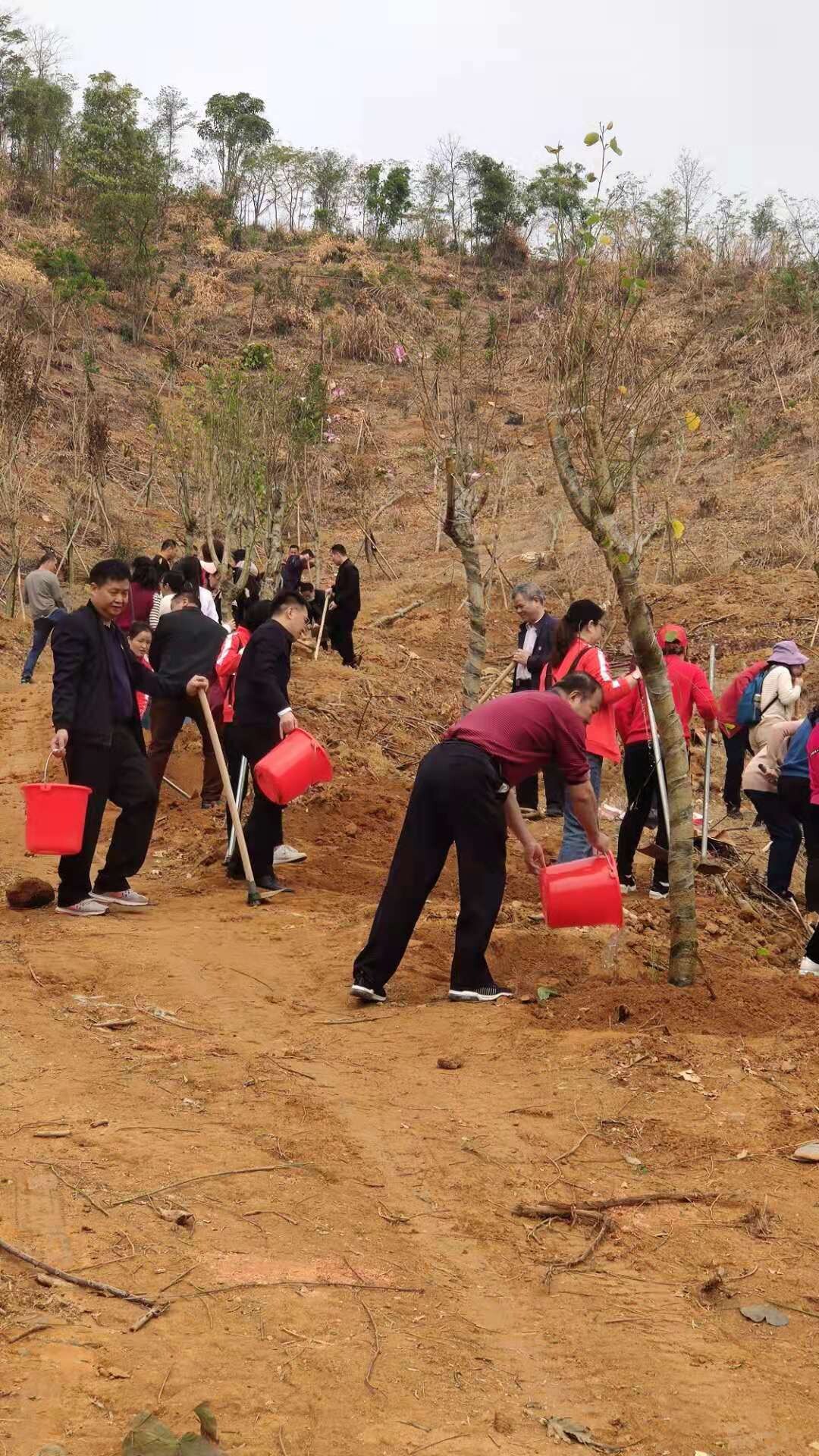 活动进行时,我们以10人为一小组的形式分成9组,大家纷纷撸起袖子,挥舞锄头、挖坑、落苗、填土、浇水,整个植树活动分工明确、干劲十足、繁忙而有序,气氛非常热烈。