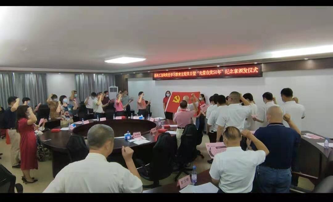 县科工信局开展党史学习教育主题党日暨“光荣在党50年”纪念章颁发仪式活动
