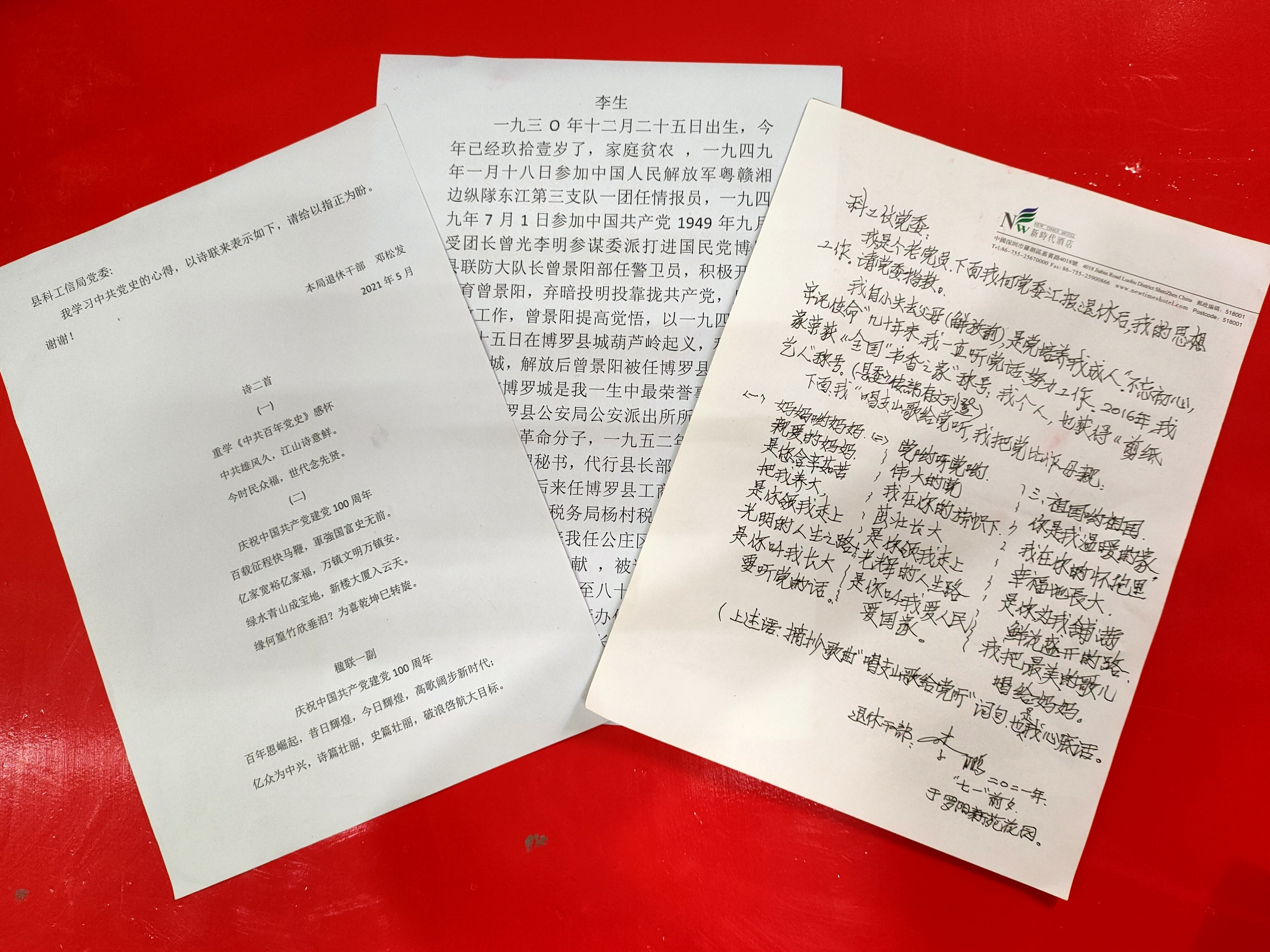 (图5:离退休党支部李生、李鹏、邓松发等同志学习心得及原创诗词作品)