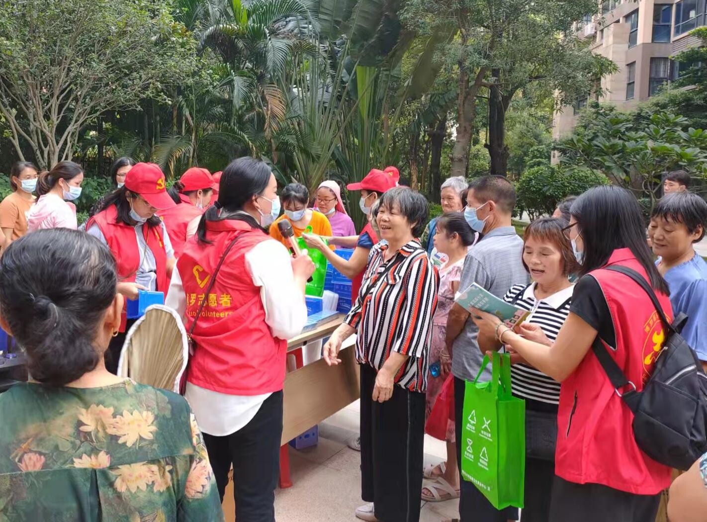 活动的第二站来到了小区门口,工作人员在摊位前对来往的住户发放宣传手册并普及垃圾分类知识,号召大家养成垃圾分类的良好习惯,积极参与到垃圾分类的行动中来。
