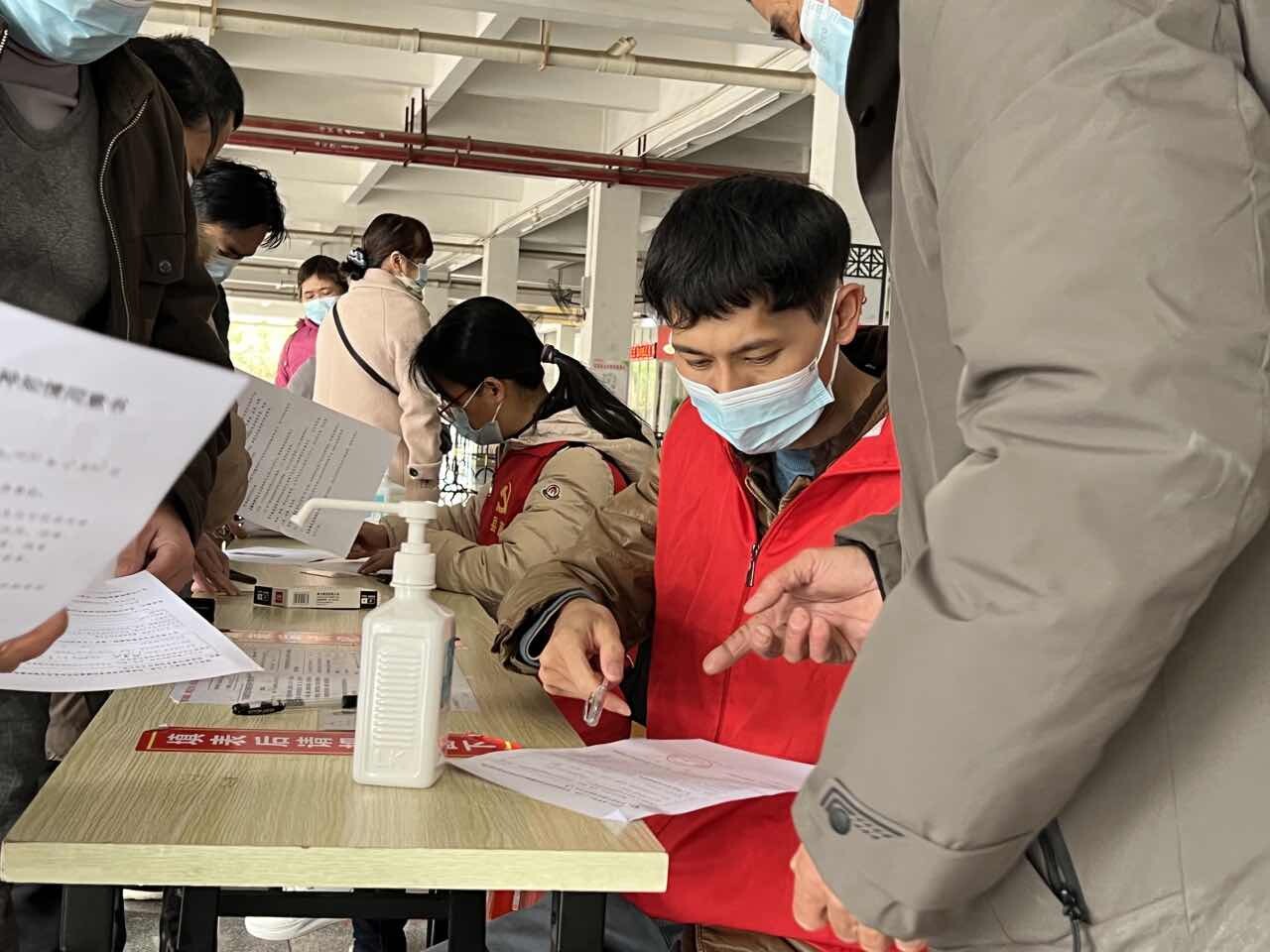 在现场,志愿者们互相配合做好维持秩序工作,热心回答前来接种疫苗群众的各种问题,引导他们有序排队、填写资料,并将完成接种的人员安排到留观区休息。