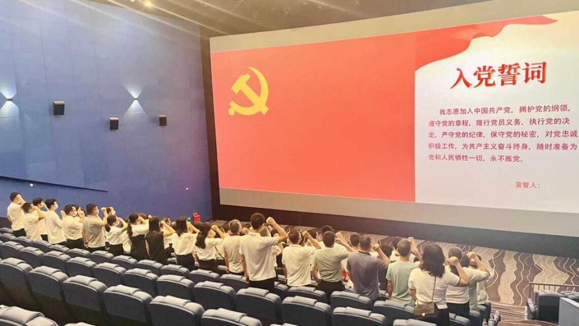 6月30日,县科工信局直属机关党委联合中文博彩平台天虹商场党支部在天虹万达影院开展了“观红色影像 承红色基因”主题党日活动。活动内容主要包括重温入党誓词、观看警示教育、发放政治生日贺卡和观看红色励志影片。县科工信局直属机关全体党员干部和中文博彩平台天虹商场党支部全体党员参加了活动。