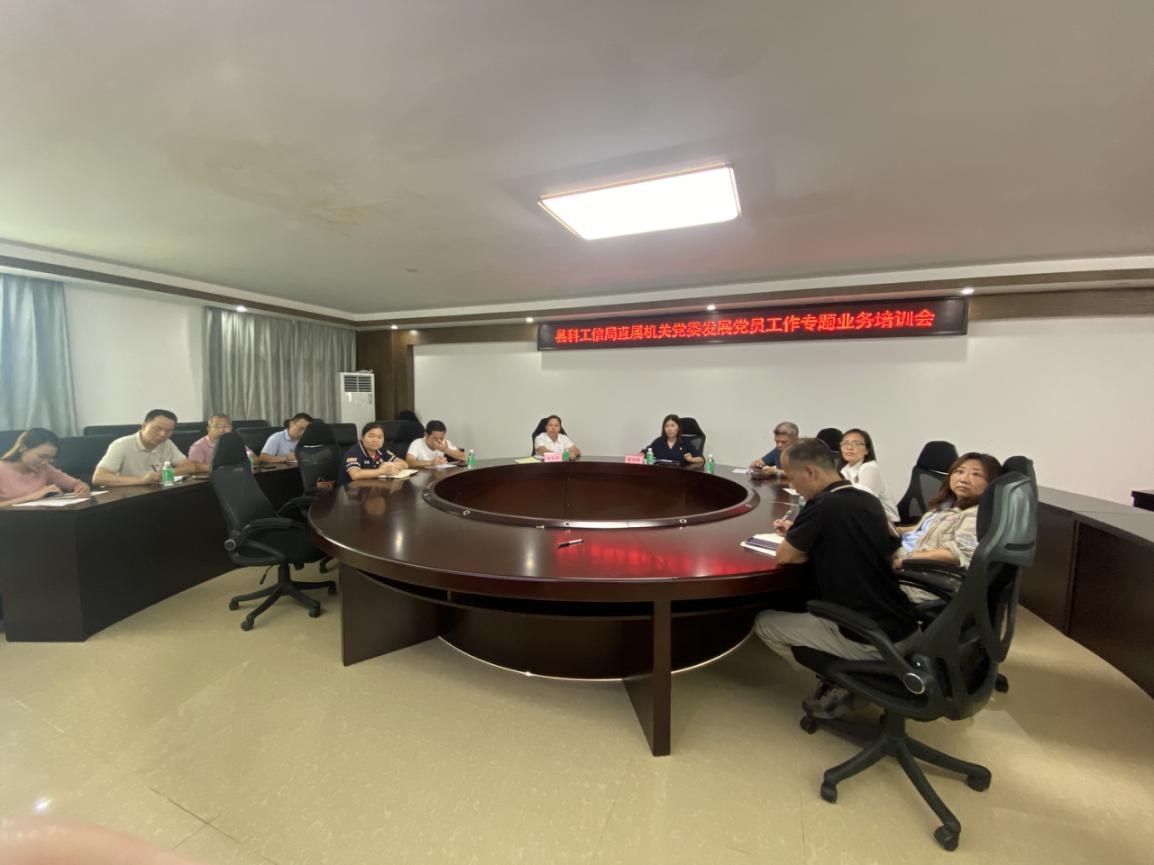 发展党员是党的建设的源头工程、基础工程。为进一步规范发展党员流程,提高基层党务干部知识理论素养,县科技工业和信息化局直属机关党委于2024年9月25日下午组织局党委下属的党支部书记、组织委员等人员参加发展党员工作专题业务培训会。培训会由局党委委员廖诗珊同志主持。