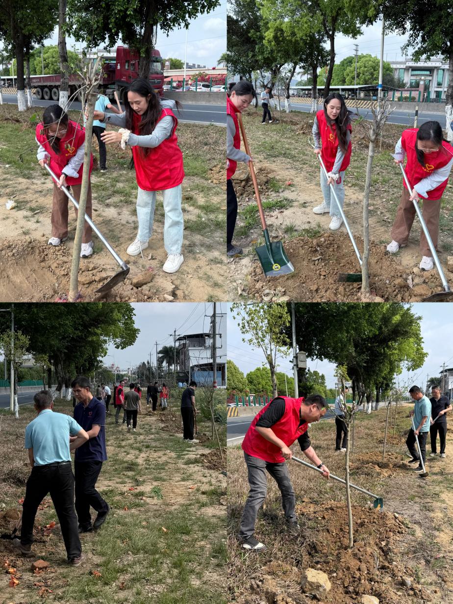 活动现场,气氛热烈且有序。大家分工明确、配合默契,有的挥锹铲土,有的扶树正苗,有的培土围堰,有的提水浇灌,每个环节都认真细致,现场呈现出一派热火朝天的劳动景象。众人齐心协力,在松园围村的多个区域栽下了共计100株树苗。这些新栽下的树苗在微风中轻轻摇曳,展现出蓬勃的生机,为松园围村带来了满满的绿色希望。