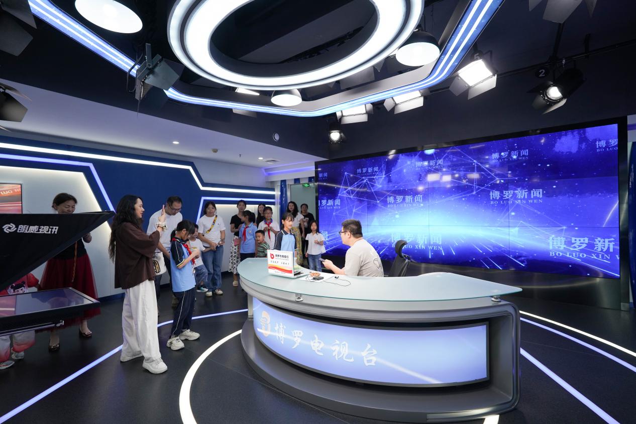 电视台知名主播热情迎接亲子家庭,介绍融媒体中心作用,讲解知识并互动提问。在融媒探秘之旅中,孩子们参观记者新闻采集区、新闻出镜及制作场所、电台直播间,了解到了新闻的制作流程。同时也设置新闻主播职业体验环节,孩子们都踊跃参与模拟演播,在互动问答赢贴纸兑换礼品,收获满满。