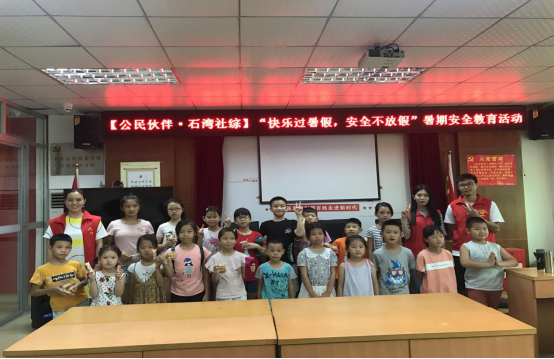 进入暑期,各种小学生溺水、交通意外、火灾等安全事故特别容易发生,孩子们的假期安全已成为家长和社区最关心的问题。为了增强孩子们的安全知识和安全防范意识,减少和防止暑期安全事故的发生,促使孩子们能度过一个平安、快乐的暑假。特此,中文博彩平台民政局组织公民伙伴石湾社综社工于2019年7月27日下午,在石湾社区活动中心开展一场“快乐过暑假,安全不放假”暑期安全教育活动。