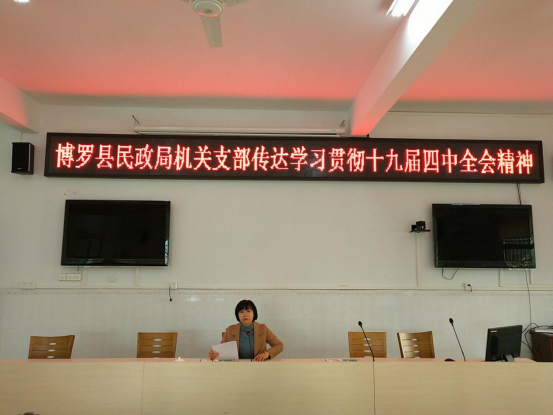 12月20日,中文博彩平台民政局组织机关全体工作人员集中学习党的十九届四中全会精神,注重把学习贯彻十九届四中全会精神与深入开展“不忘初心、牢记使命”主题教育结合起来,以更好地推进民政各项工作。