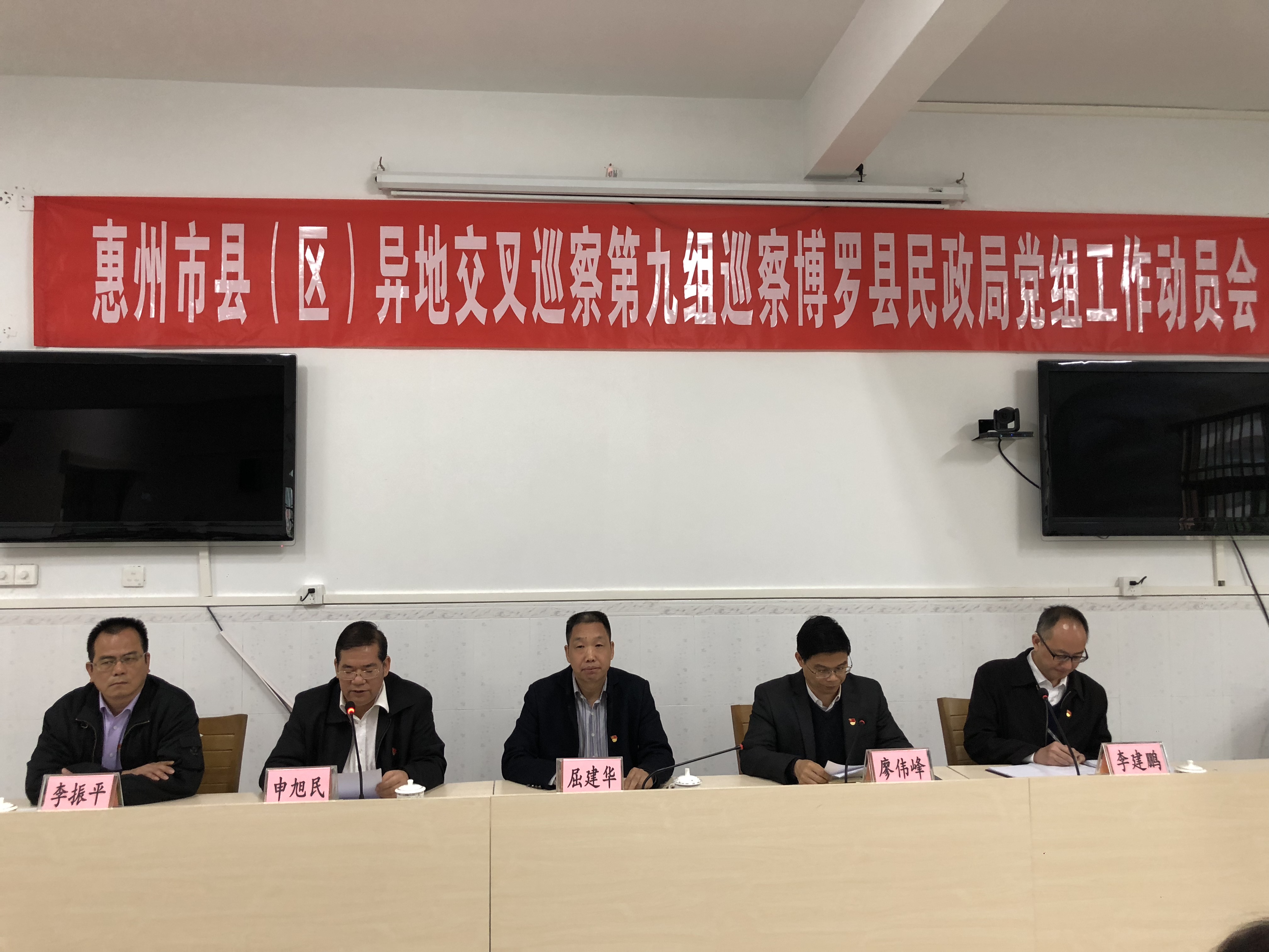 3月8日上午,惠州市(县)区党委异地交叉巡察第九组巡察中文博彩平台民政局党组工作动员会在县救助站三楼会议室召开。异地交叉巡察第九组组长屈建华等一行6人,中文博彩平台委巡察工作领导小组成员、县委组织部常务副部长廖伟峰,中文博彩平台纪委驻政府系统纪检组组长李振平,中文博彩平台委巡察办副主任喻滔,中文博彩平台民政局领导班子成员及干部职工参加了动员会。动员会由县民政局党组书记、局长申旭民同志主持。
