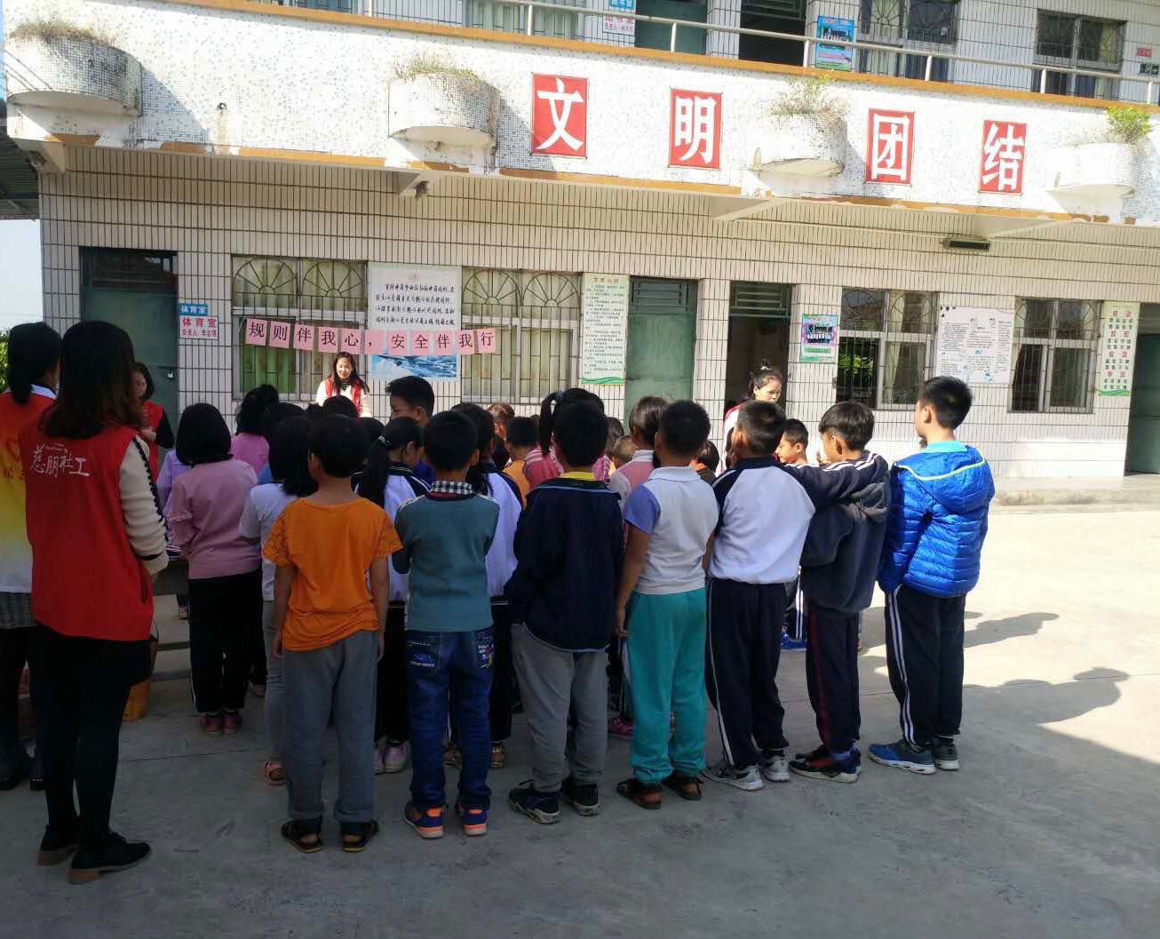 近日,中文博彩平台民政局组织惠州仲恺高新区慈朋社会工作发展中心驻松园围的社工,在松园围小学对全校学生组织了“规则伴我心,安全伴我行”的安全宣传活动,该活动让小朋友们了解更多的安全知识和增强自我防范的本领。